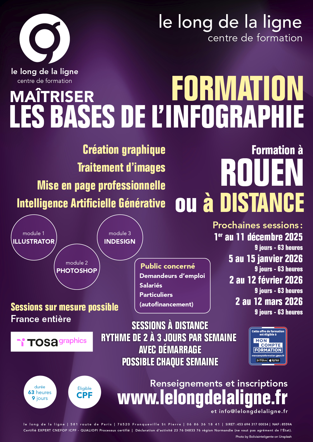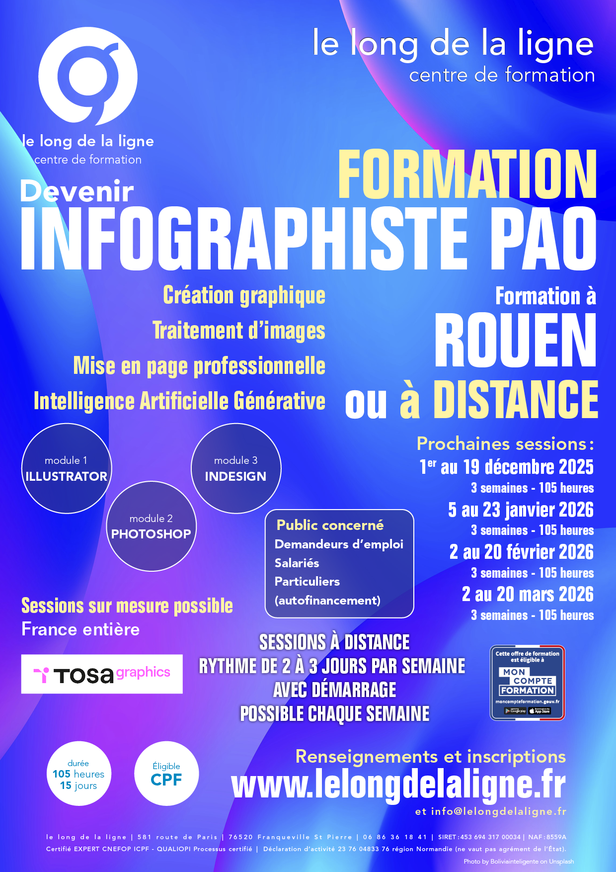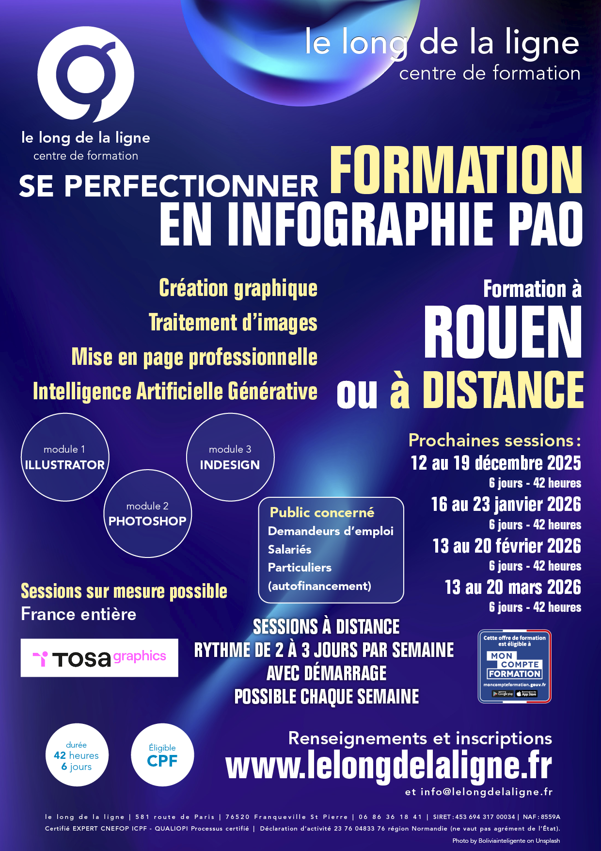 Le centre de formation le long de la ligne vous propose des formations orientées multimédias, répondants essentiellement au thème des NTIC (Nouvelles Techniques de l'Information et de la Communication).